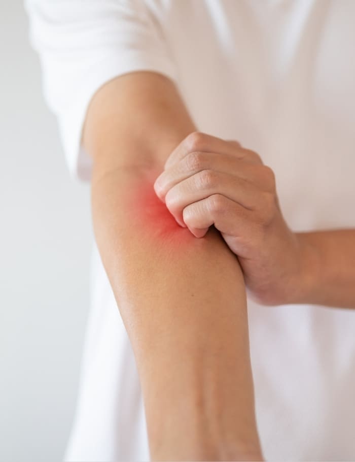 Exposure to pollutants and allergens can agitate the skin, causing a flare-up. These include smoke, dust, pollen, skincare products, chemicals and even food items. High heat and humidity also intensify symptoms like itching.